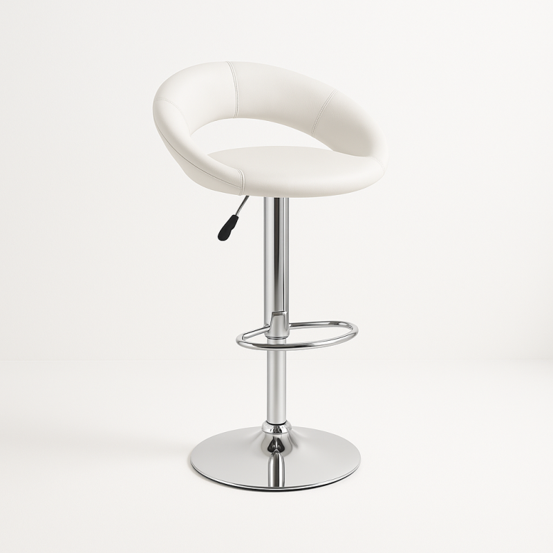 Our soft padded Bow Stool is a designer bar stool for hire which has a foot rest and is gas lift. It rises from 790mm to 970mm. This 'polo' styled stool is a versatile stool which looks fantastic on any exhibition stand, event bar areas and high dining cafe areas.