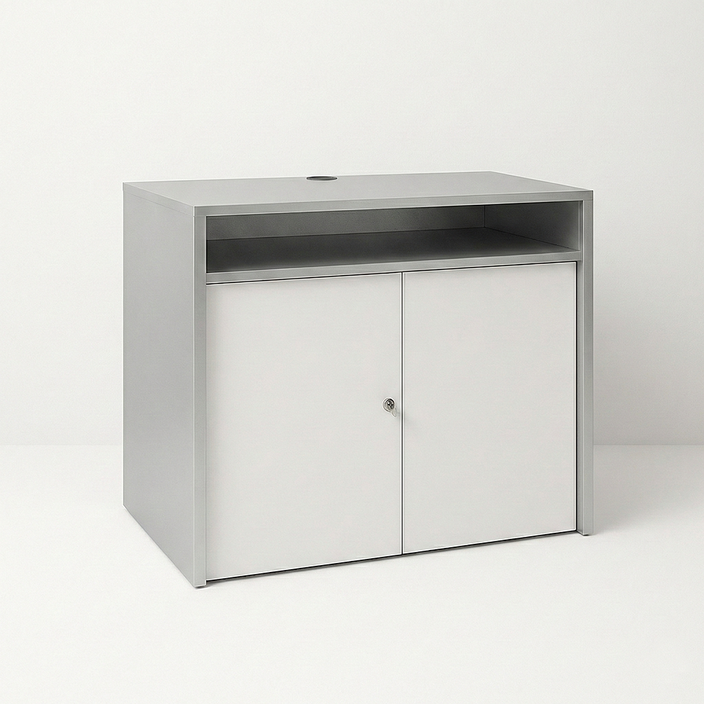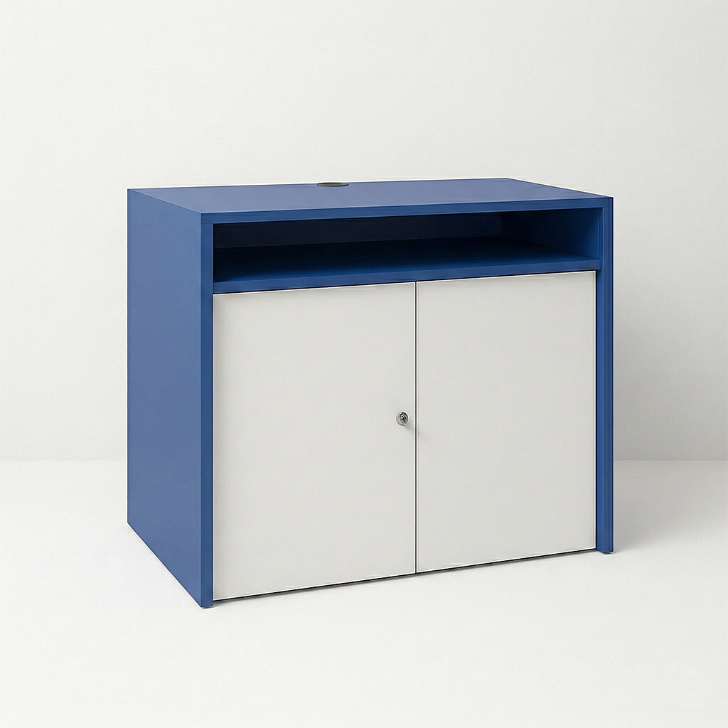 Our Concept designed Demo Desk is suitable for displaying computer presentations on with table standing monitors of up to 32". Simply place your computer base, or laptop inside the lockable cupboard and feed your cables through the management holes provided. Available in many colours to suit your company colour code.