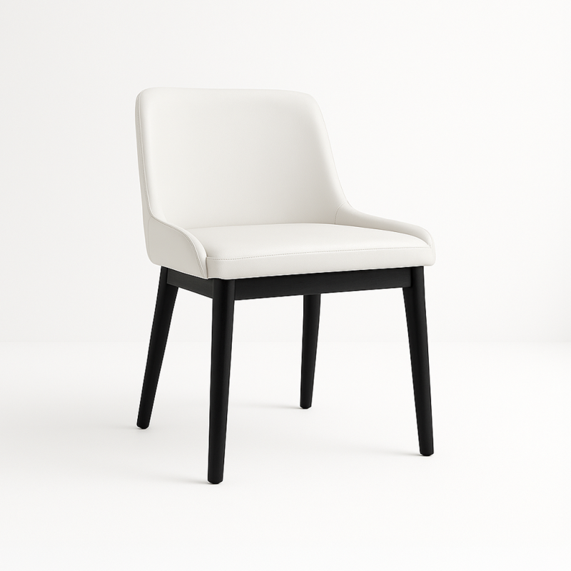 Upholstered in a trendy shade of light grey fabric, its comfortably padded seat and backrest offer ample support, whilst subtly curving round the side for fashionable flair. Its set on a solid wooden frame with a natural oak finish.