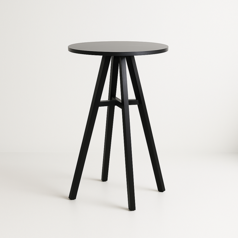 This modern round table features a sleek black top and sturdy geometric metal legs, perfect for adding a stylish touch to any space. Ideal as a side table or small dining table.