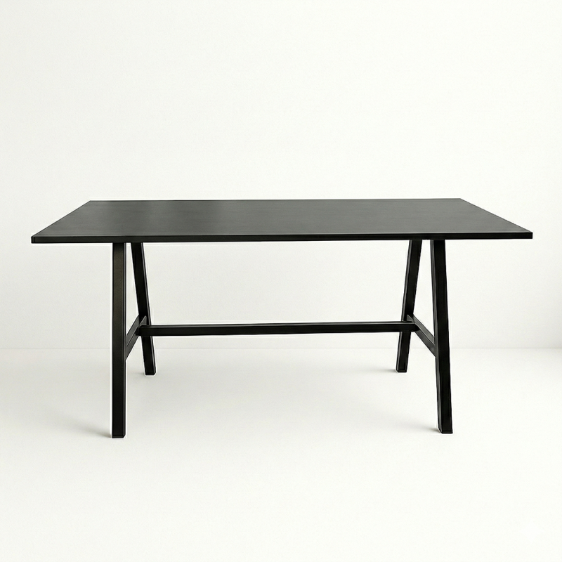 The Jude Rectangle Dining Table features a sleek, modern design with a sturdy metal frame and smooth rectangular tabletop. Designed at dining height, it’s ideal for seated dining, events, and hospitality spaces. Its minimalist black finish adds a contemporary touch that suits both professional and social settings.