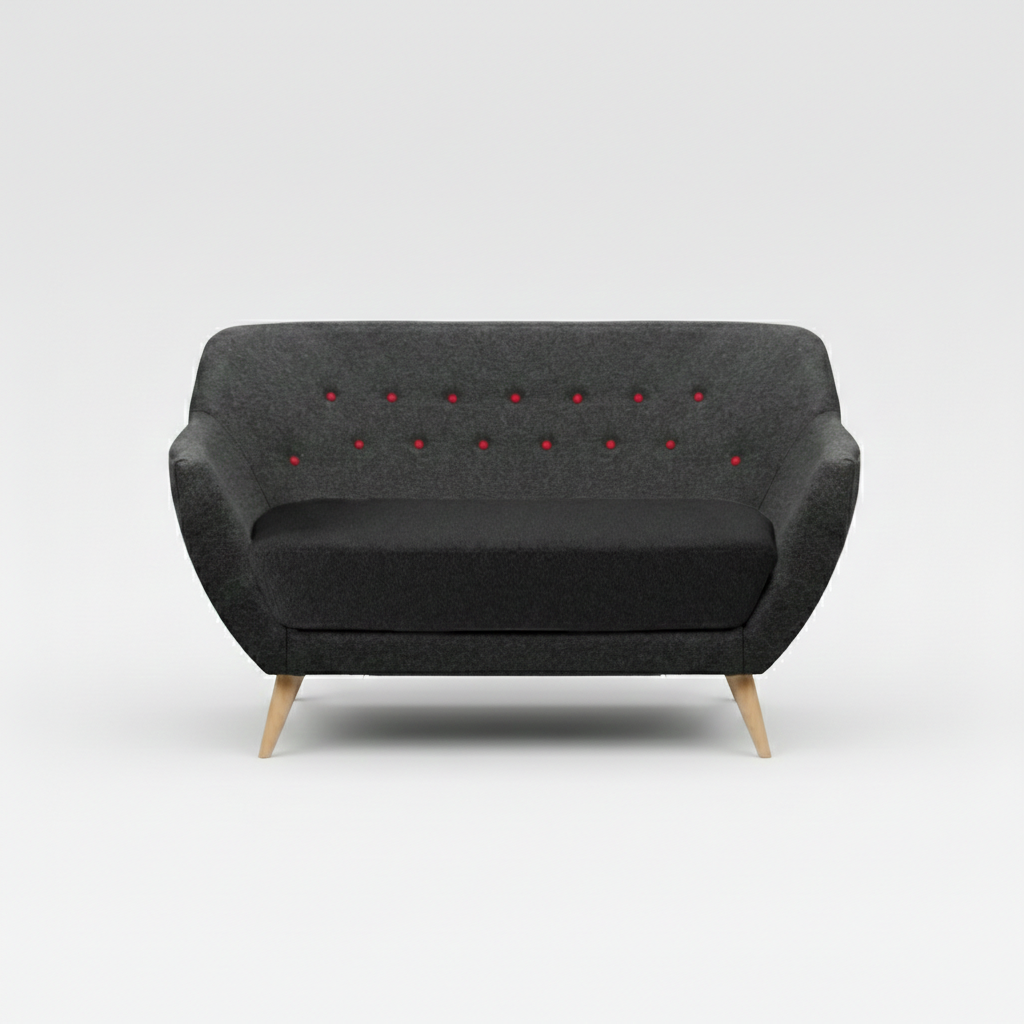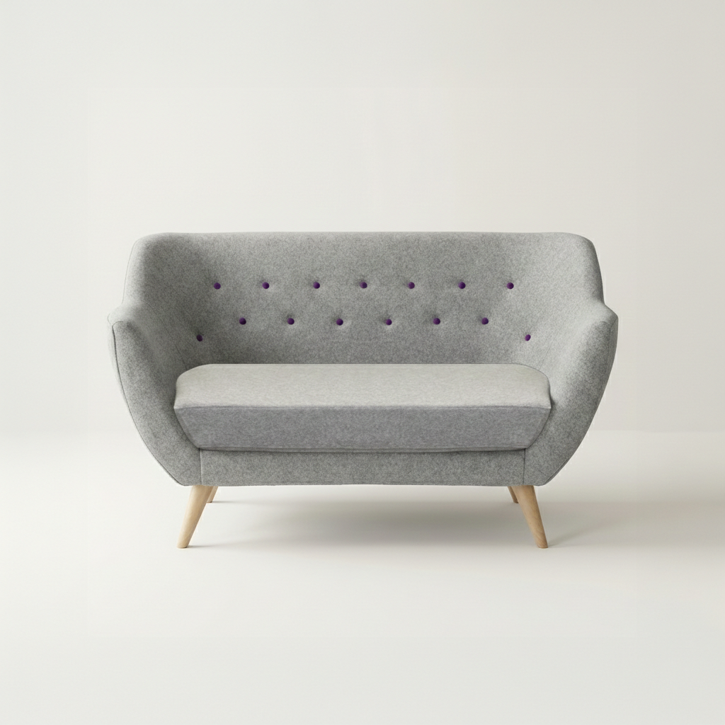 The Poet Sofa epitomises luxurious furniture design. Upholstered in a delightful grey fabric, the seat and accompanying high backrest are padded to give the utmost comfort. In addition, the backrest has a chic design that utilises decorative buttons for a classic look. Armrests connect the seat and backrest to provide further comfort and ensure all-encompassing support. Emerging from beneath the seat, four solid wooden legs support the frame and each fashion a slick finish that highlights the sofas minimalist credentials.