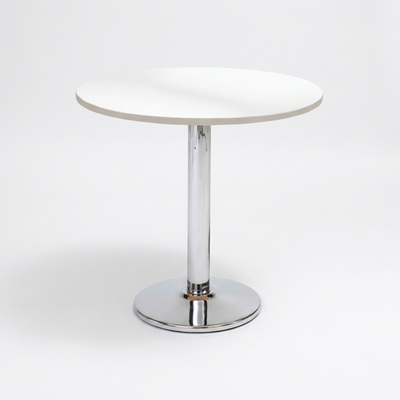 Our Surf Table is a very popular dining table. It has a sturdy chromed base leading up to a 800mm top. The tops are available in a variety of colours, shapes & sizes. We have 600mm round tops in black, white or beech, and we have them available in 800mm square in the 3 colours. Pantone Colours available at additional cost.
