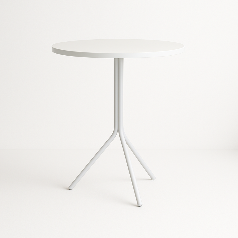 A sleek round table with a white top and sturdy tripod base, perfect for events and exhibitions. Its compact, lightweight design makes it easy to transport and set up, ideal for both indoor and outdoor use at gatherings, functions, or displays. Stylish and practical for any event setting.
