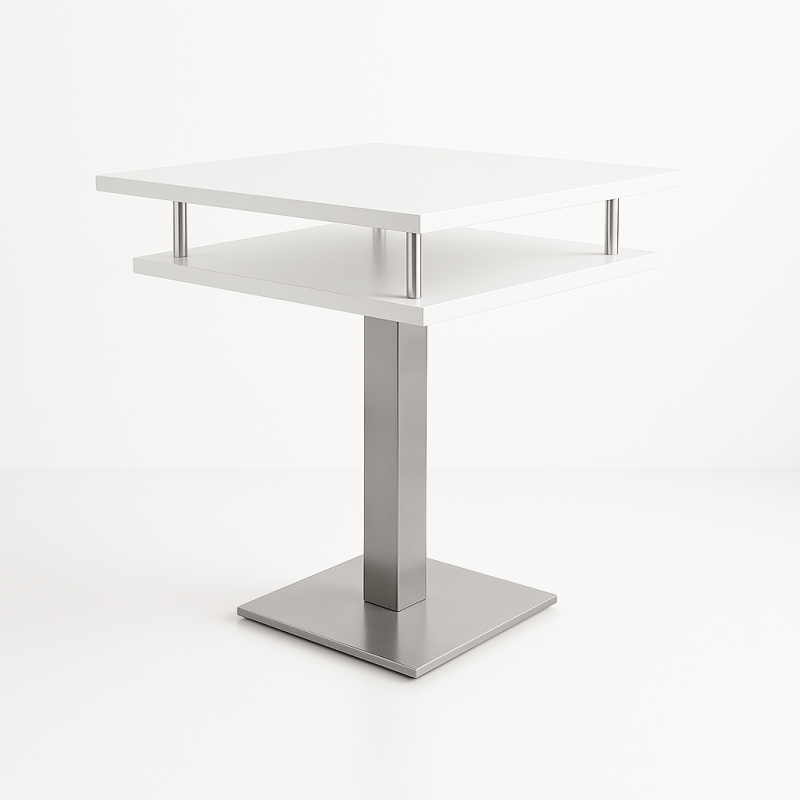 Our Wave Table is a 2 tiered designer dining table. It suits our Wave Chair perfectly and looks amazing in any environment. Not only is it suitable for dining but it's also suitable for informal meetings with the lower tier you can store folders, notes & business literature.